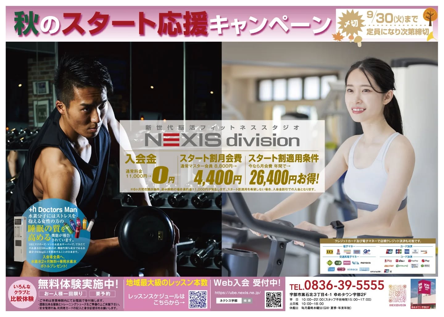 全エリア利用可能なマスター会員を6ヵ月間 8,800円/月→4,400円/月でご入会できるお得な秋のスタート応援キャンペーン好評受付中です⤴️🍂