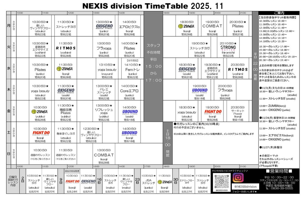11月のレッスンスケジュールが、ホームページにて公開されました👀✨
