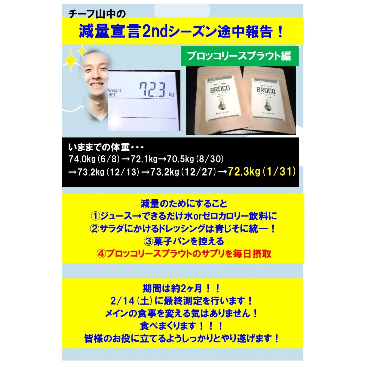 次回測定は2週間後の2/14、最終測定となります🙄
