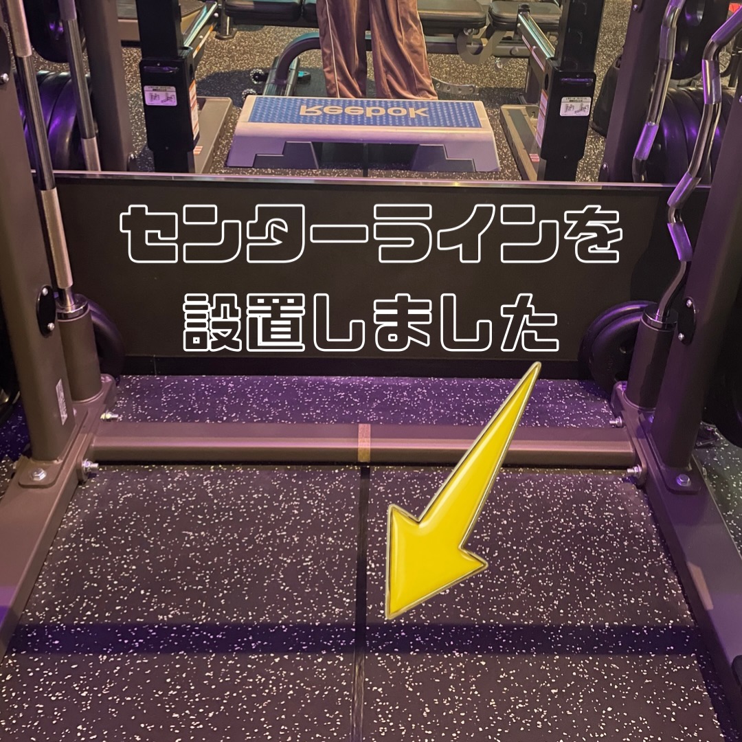 お客様のお声にお応えし、パワーラックとスミスマシンに、センターラインを設置致しました!💁♀️💁